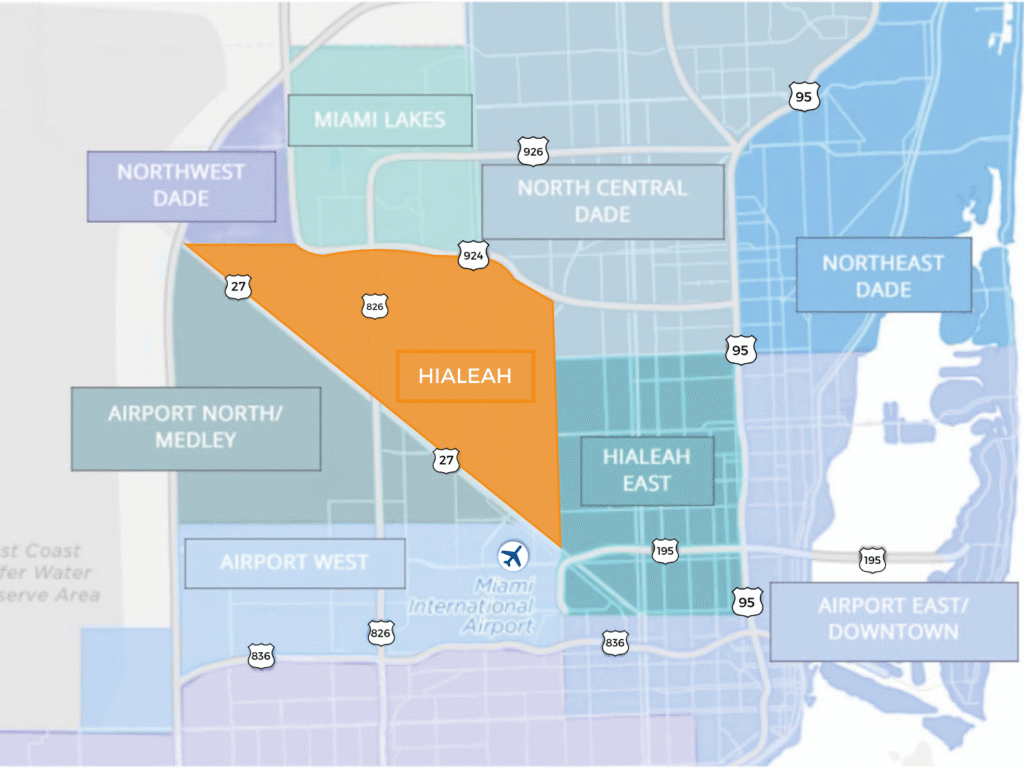 Hialeah is a well-established industrial and commercial market offering a large labor pool and competitive occupancy costs. Its central location provides convenient access to major transportation corridors, including highways and rail, supporting manufacturing, wholesale, and distribution operations. With a diverse inventory of industrial properties and long-standing business activity, Hialeah remains a reliable market for companies seeking value and accessibility.
